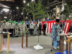 初見工場のキュポラ更新に伴い、火入れ式と安全祈願祭を執り行いました。